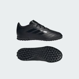 Ponte estos guayos adidas Goletto IX para niños y prepárate para brillar. Su exterior sintético suave incorpora acolchado y perforaciones en los lugares adecuados para mantenerte cómodo en todo momento. La suela de caucho con taches te permite moverte con rapidez en canchas de césped artificial.