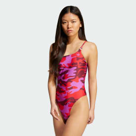 Whether you're diving into the deep end or just lounging poolside, this adidas one-piece swimsuit makes a bold statement. A camouflage print gives a nod to hip hop culture, while the low-cut back and asymmetrical neckline add glamour. This product is made with at least 70% recycled materials. By reusing materials that have already been created, we help to reduce waste and our reliance on finite resources and reduce the footprint of the products we make.