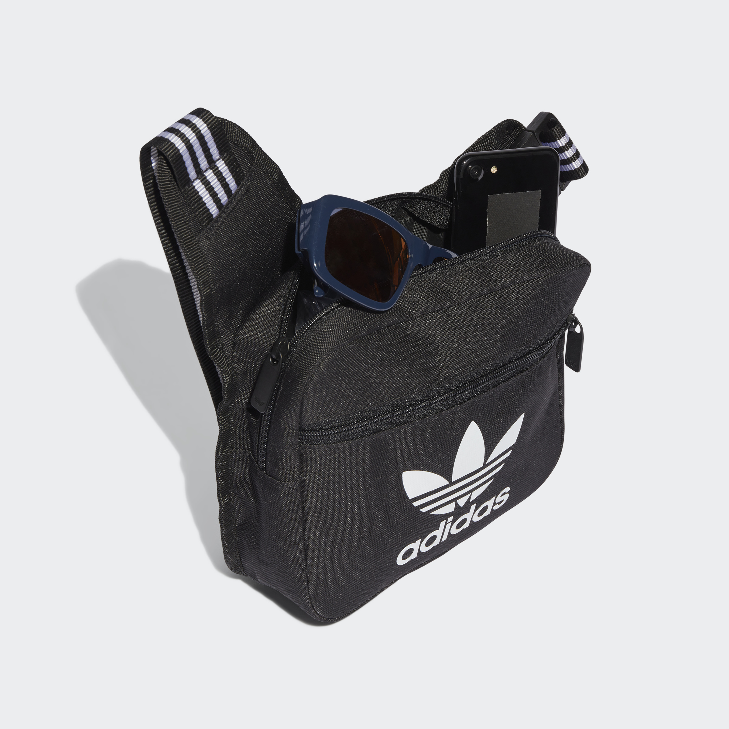 Ready to tag along wherever your day leads, this adidas Adicolor sling bag is the perfect capper to any ensemble. Crafted from a soft plain weave fabric, and finished with a top zip closure and bonus front zip pocket, it's as functional as it is stylish. An adjustable strap gives you the perfect fit every time you slip it on, while its unique crossbody silhouette guarantees your necessities are always within reach. Designed for days on the go, this versatile bag is an essential companion any day of the week. Made with a series of recycled materials, and at least 40% recycled content, this product represents just one of our solutions to help end plastic waste.