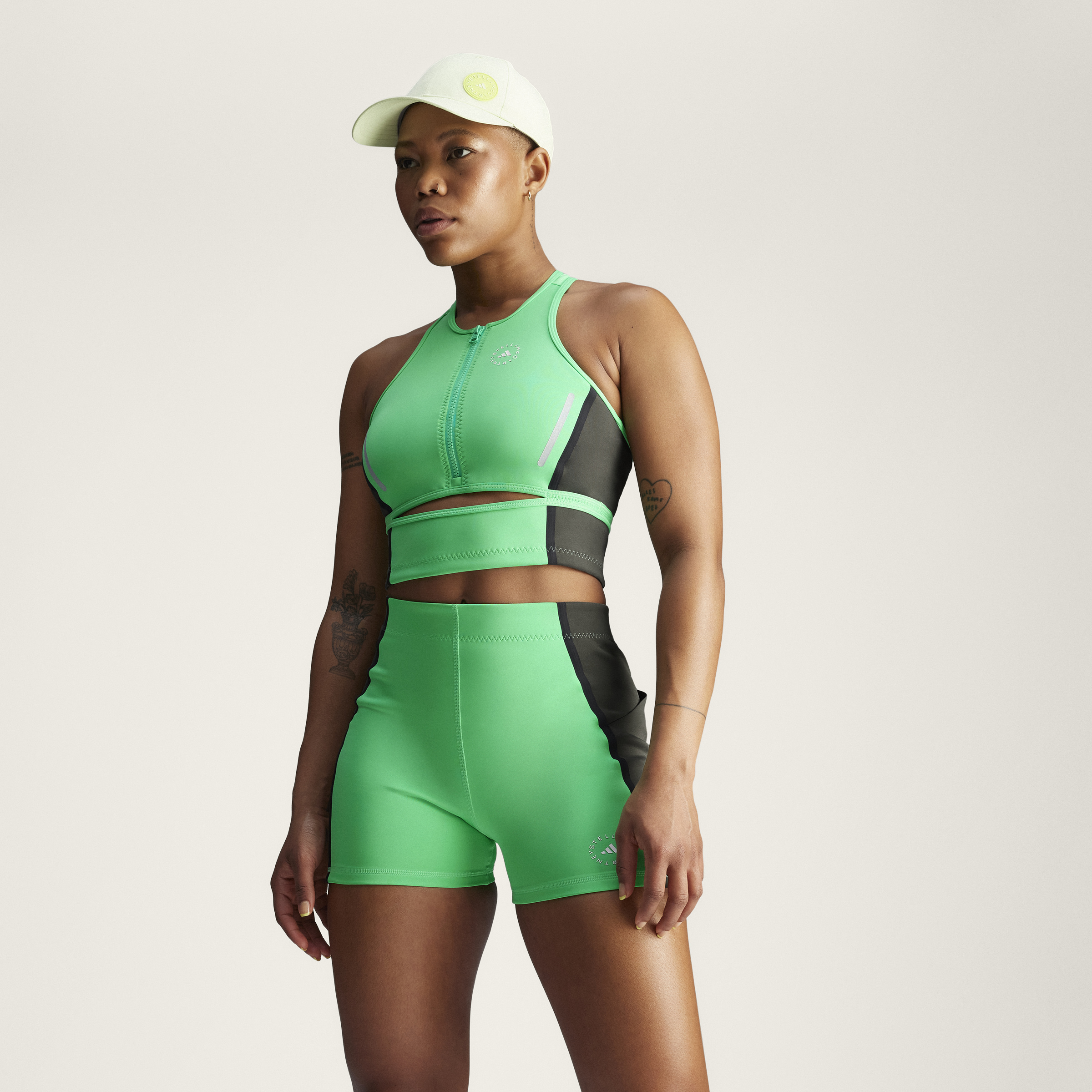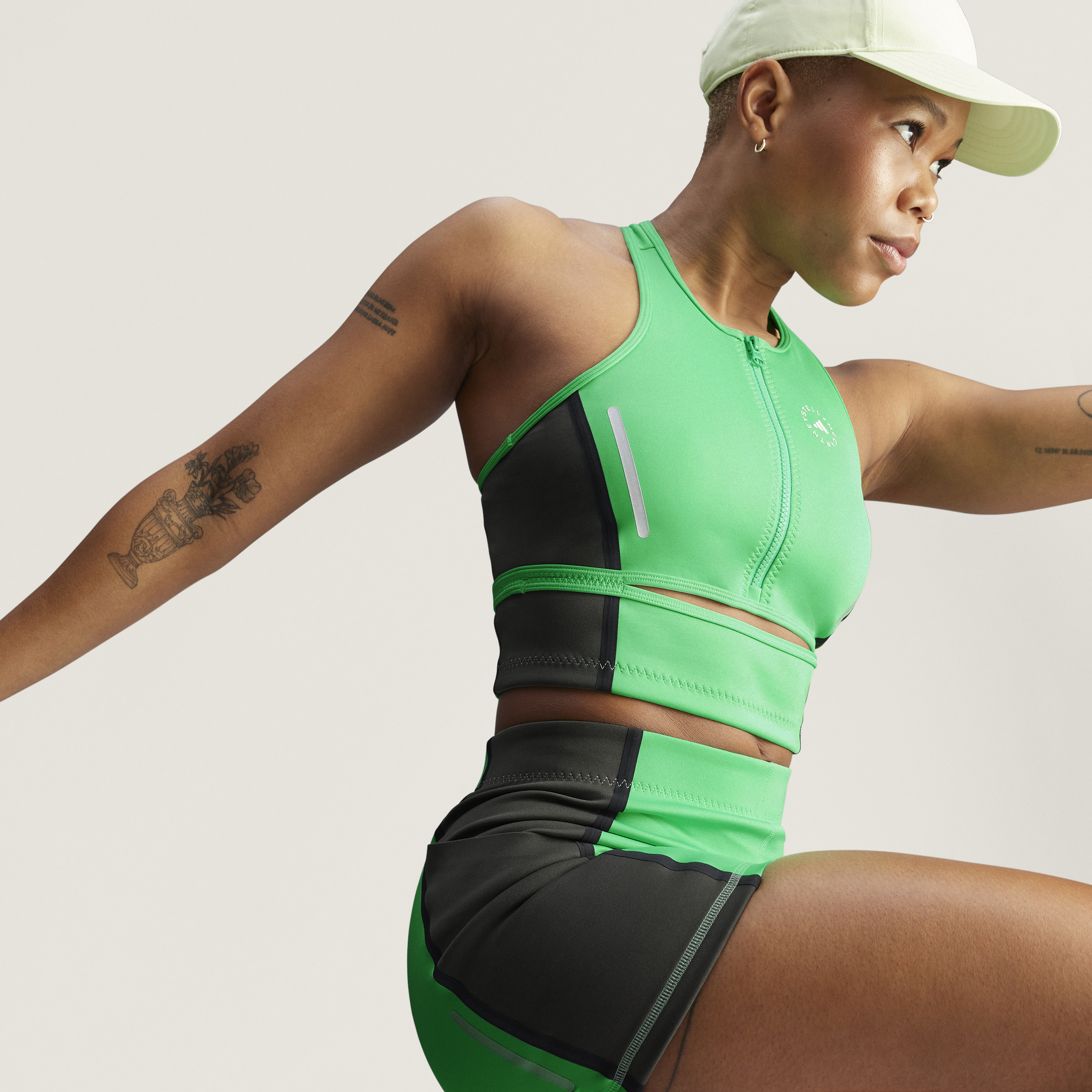Luxury meets the trifecta. We're talking running, yoga and training – which is what this adidas by Stella McCartney crop top is designed for. The modern silhouette features a racerback to encourage unrestricted movement and mesh inserts to up the breathability and let airflow circulate. Luckily the fabric is quick-drying, too, so you can work up a sweat and not lose focus. A high neck and zip front detail add fashionable flair. Slip it on for a morning run or your favourite HIIT class and make a statement. This product is made with at least 70% recycled materials. By reusing materials that have already been created, we help to reduce waste and our reliance on finite resources and reduce the footprint of the products we make.