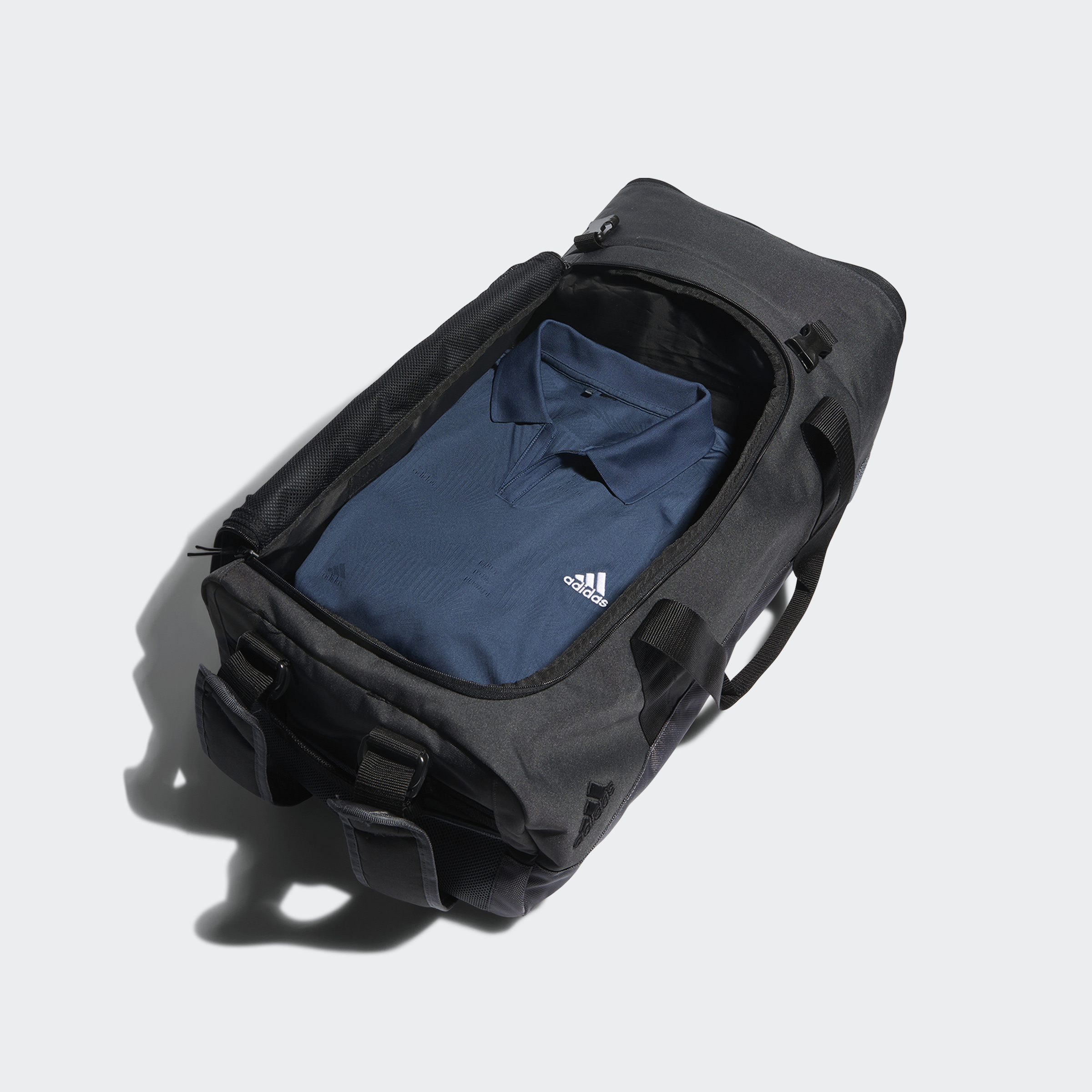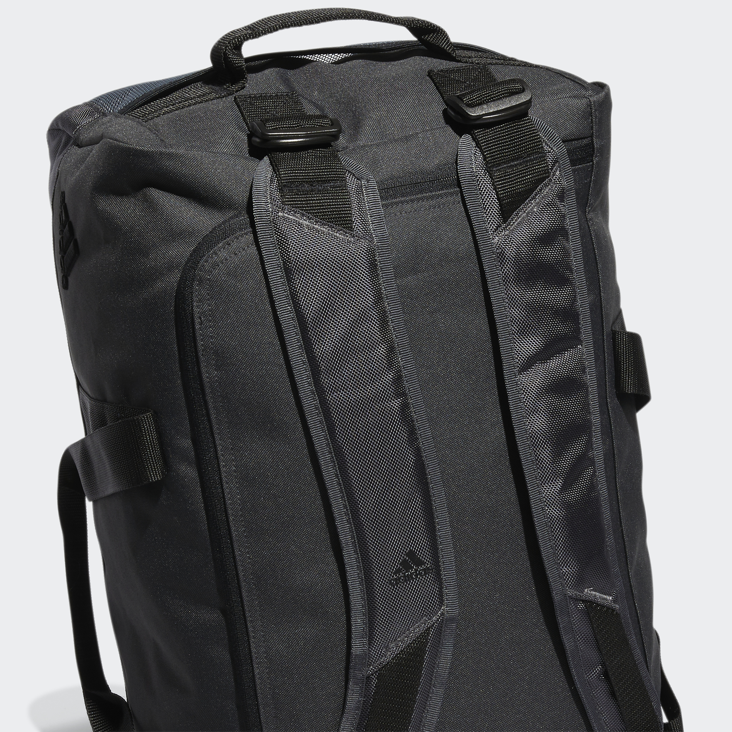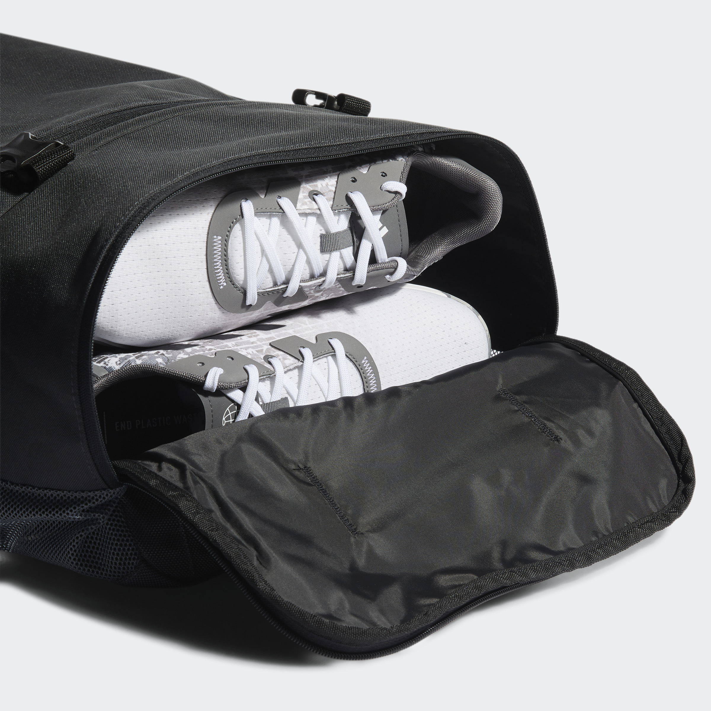 Keep your golf gear in one place. This adidas duffel bag is roomy enough for your pants, gloves and even some spare balls for the golf course. Put your shoes in the dedicated vented pocket when you're done playing. Adjustable shoulder straps let you carry it like a backpack, or you can remove them altogether and use the padded handle for a more conventional approach. Made in part with recycled content generated from production waste, e.g. cutting scraps, and post-consumer household waste to avoid the larger environmental impact of producing virgin content.