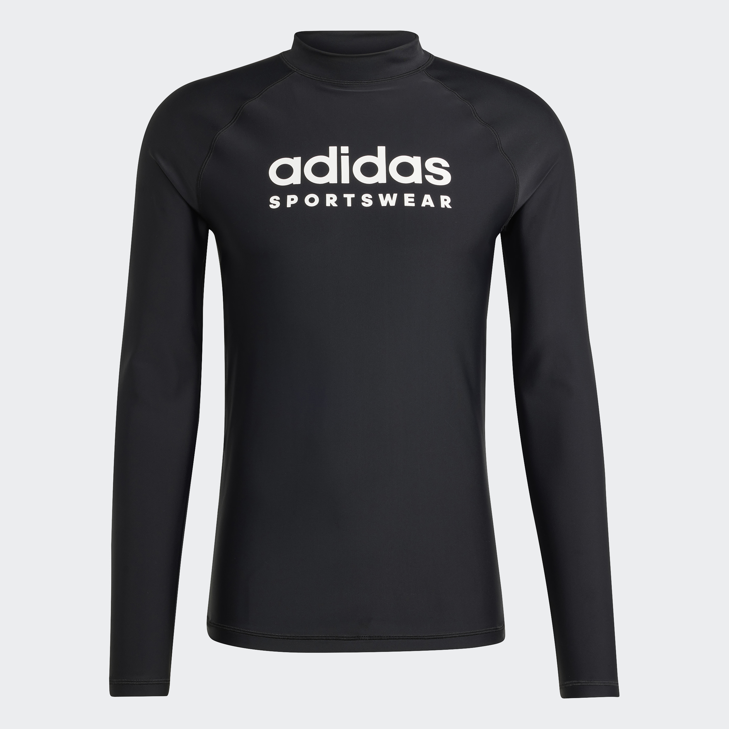 When the heat's on, cover up in style. This form-fitting rash guard shields from sun and surf while showing off your adidas pride. The mock neck and long sleeves provide full coverage, but the tricot fabric stretches to keep you without restriction. Whether paddling out at dawn or lounging poolside, the iconic adidas Sportswear graphic on the front lets everyone know you came to play.This product is made with at least 70% recycled materials. By reusing materials that have already been created, we help to reduce waste and our reliance on finite resources and reduce the footprint of the products we make.