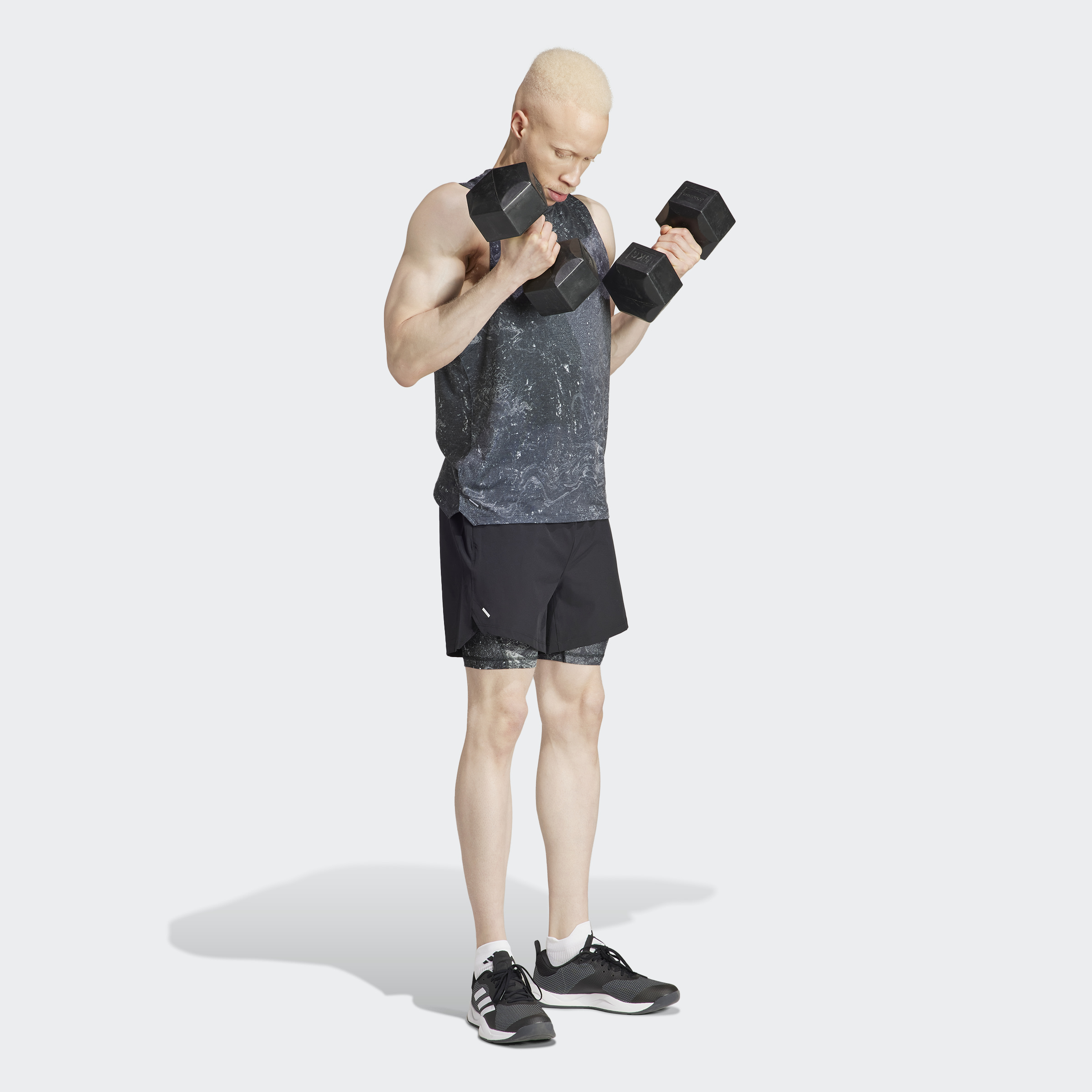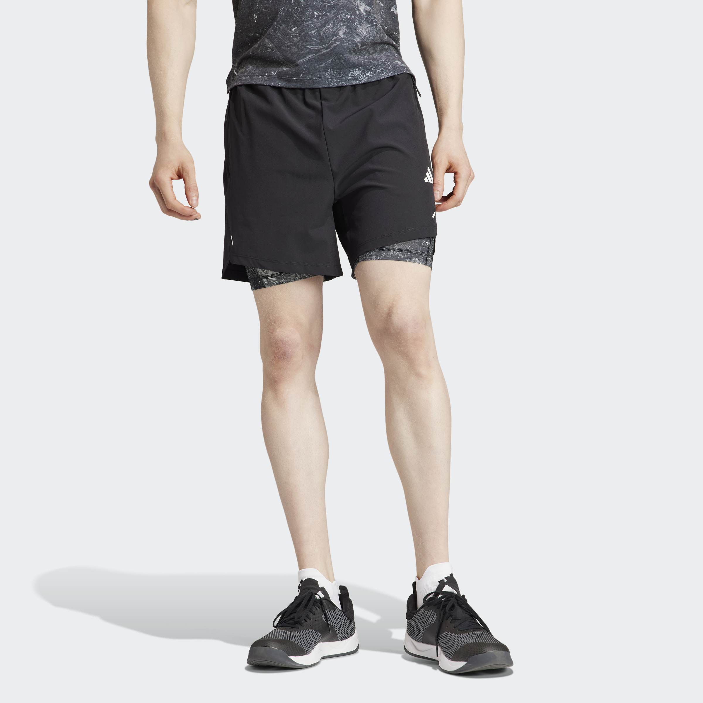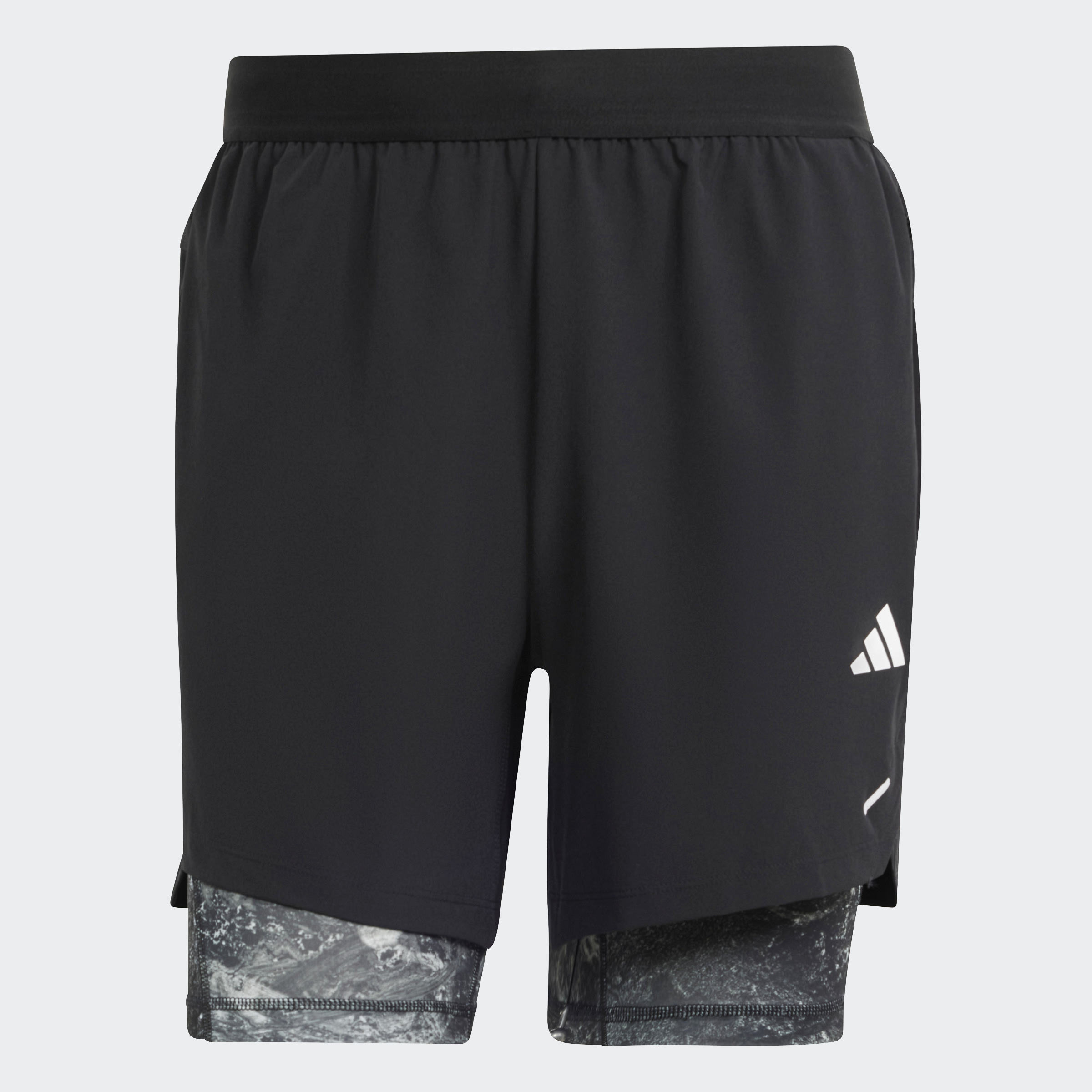 Power through your workout in shorts that work as hard as you do. These adidas training shorts feature stretchy inner tights underneath lightweight outer shorts. When your training intensifies, AEROREADY wicks sweat to keep you dry. Zip pockets give your essentials a secure home. The sandstone print infuses your workout with style. This product is made with at least 70% recycled materials. By reusing materials that have already been created, we help to reduce waste and our reliance on finite resources and reduce the footprint of the products we make.