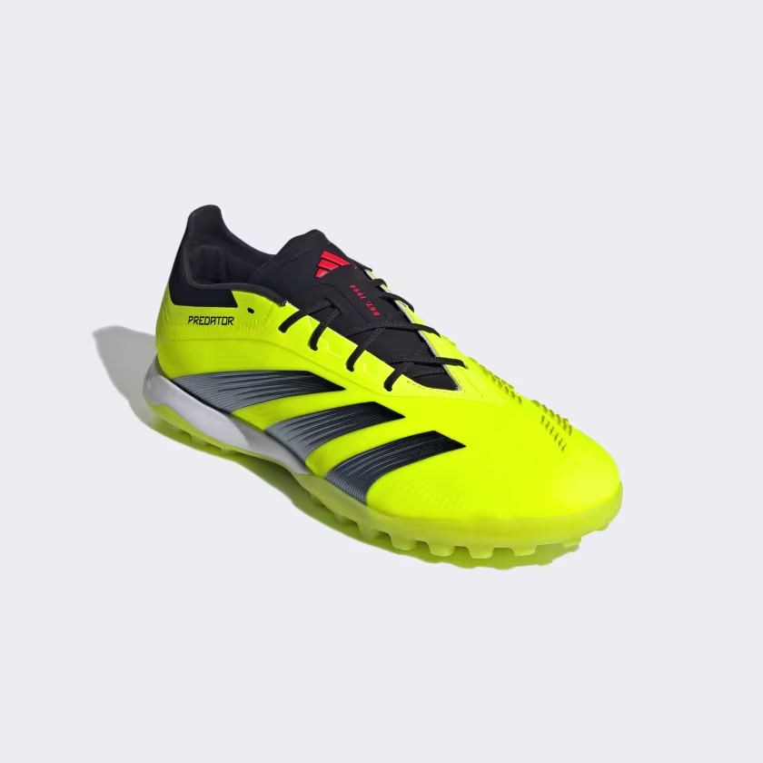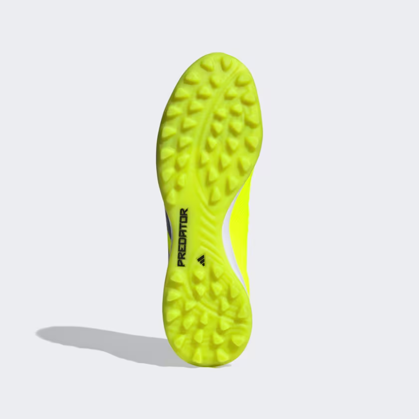 The game's all about goals, and these football boots are crafted to find the net. Every. Time. Target perfection in all-new adidas Predator. A HybridTouch 2.0 upper delivers supreme flexibility. Strategically placed onto it, rubber Strikeskin fins add biting grip for precision shooting. The low-profile Lightstrike midsole and lug rubber outsole ensure you're always ready to strike on artificial turf. This product features at least 20% recycled materials. By reusing materials that have already been created, we help to reduce waste and our reliance on finite resources and reduce the footprint of the products we make.