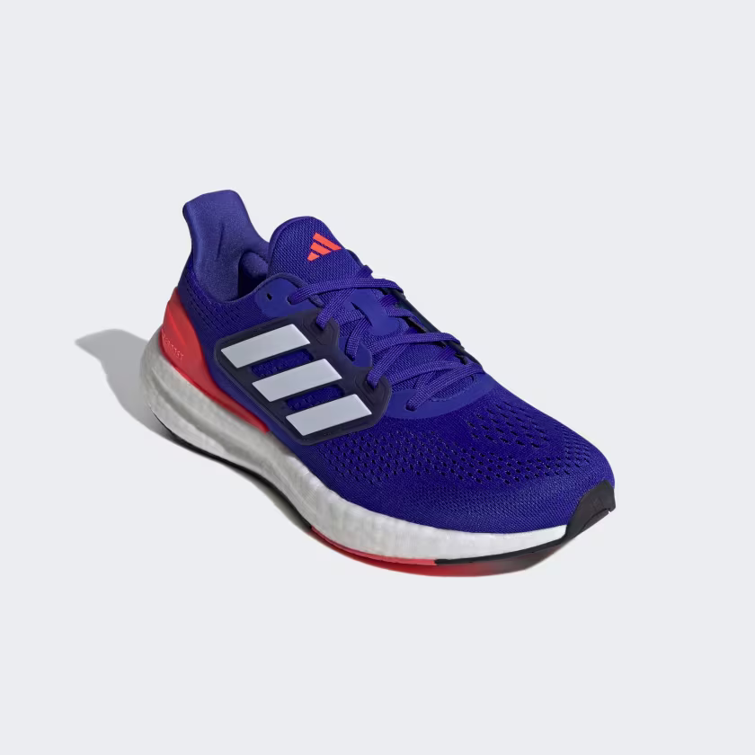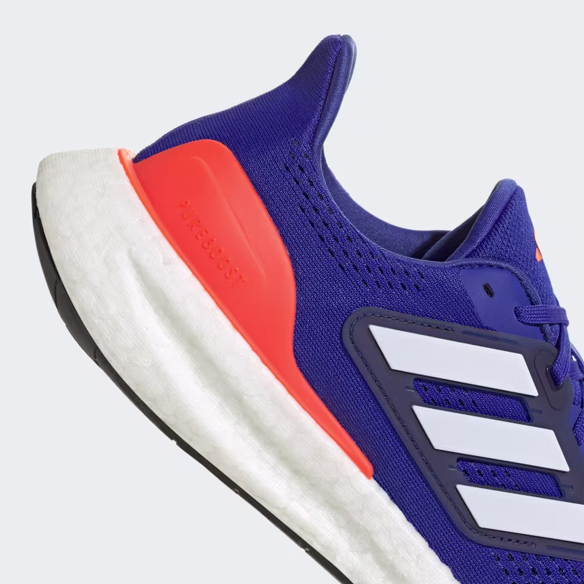 Logging daily miles is a delight in the adidas Pureboost 23 running shoes. Full-length BOOST provides the ultimate energy return, and strategic cutouts along the rubber outsole let the foam compress and expand while you run. The lightweight engineered mesh upper is breathable where your foot heats up and supportive where it needs to be, resulting in a running experience that is comfortable toe to heel. Made with a series of recycled materials, this upper features at least 50% recycled content. This product represents just one of our solutions to help end plastic waste.