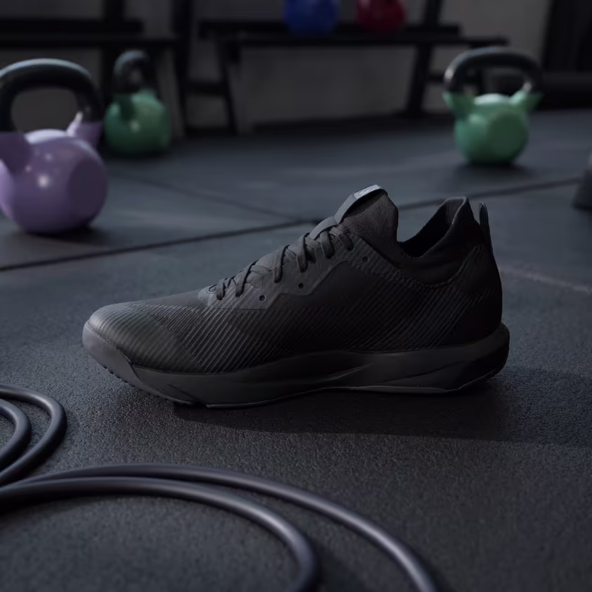 Fly through HIIT classes in shoes you can count on. These adidas training shoes are made for dynamic movement. The engineered knit upper has strategically placed areas of support. Lightstrike cushioning is super lightweight and responsive, and the asymmetrical Torsion System helps keep you stable during quick cuts and multidirectional moves. Made with a series of recycled materials, this upper features at least 50% recycled content. This product represents just one of our solutions to help end plastic waste.