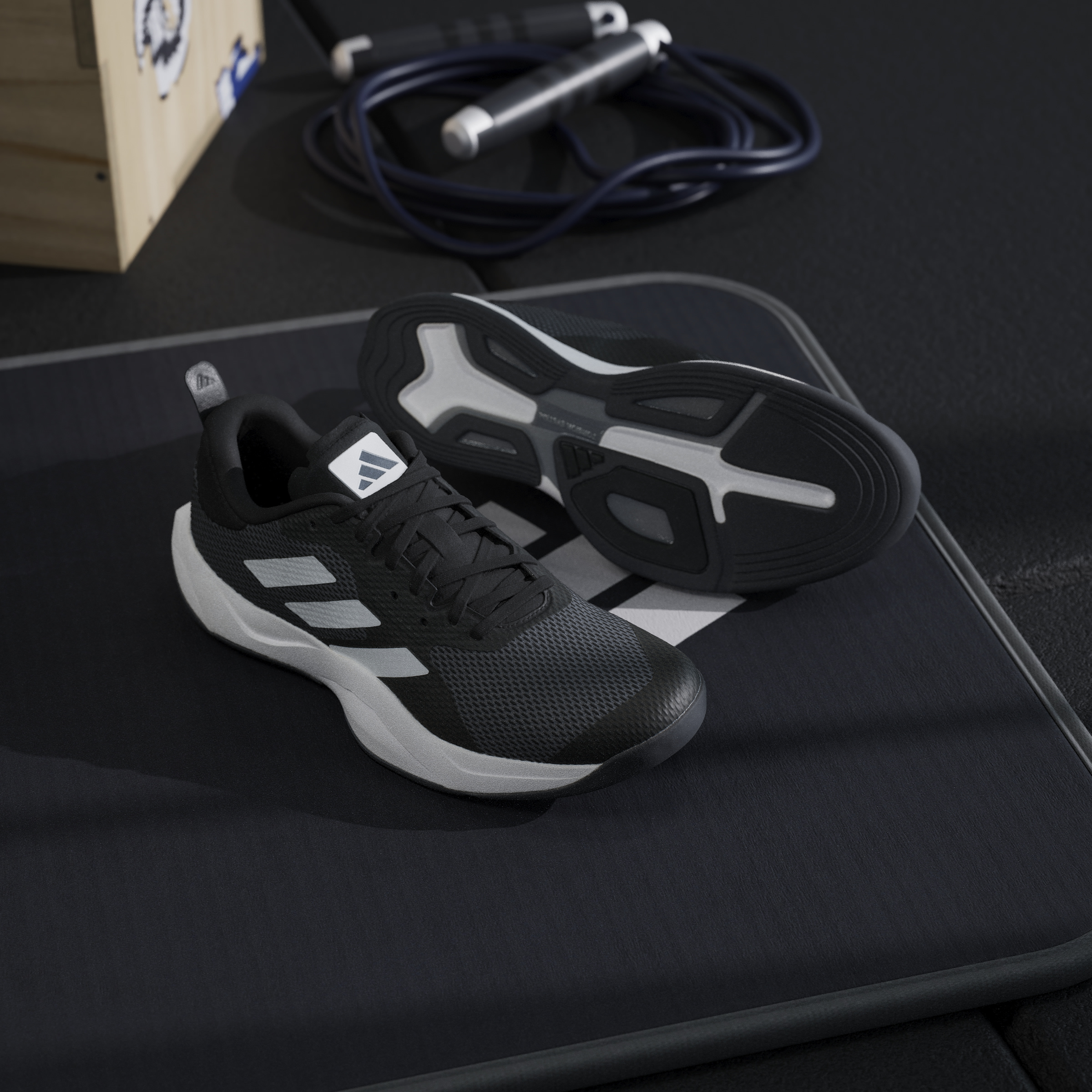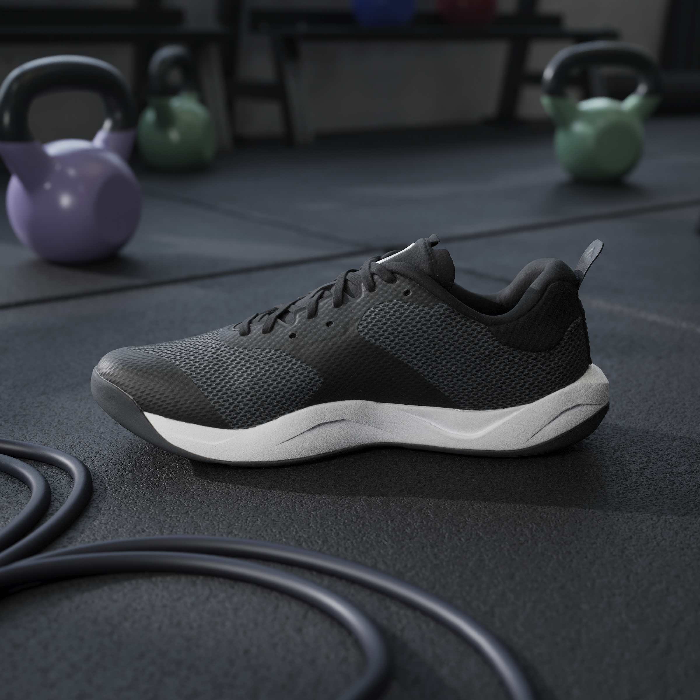 Don't train in your running shoes. The dynamic, multidirectional movements of HIIT require a dedicated pair. Like these agile, lightweight training shoes from adidas. The EVA midsole is tuned for comfort and support, and the asymmetrical Torsion System helps keep you stable during quick cuts and moves in all directions. Made with a series of recycled materials, this upper features at least 50% recycled content. This product represents just one of our solutions to help end plastic waste.