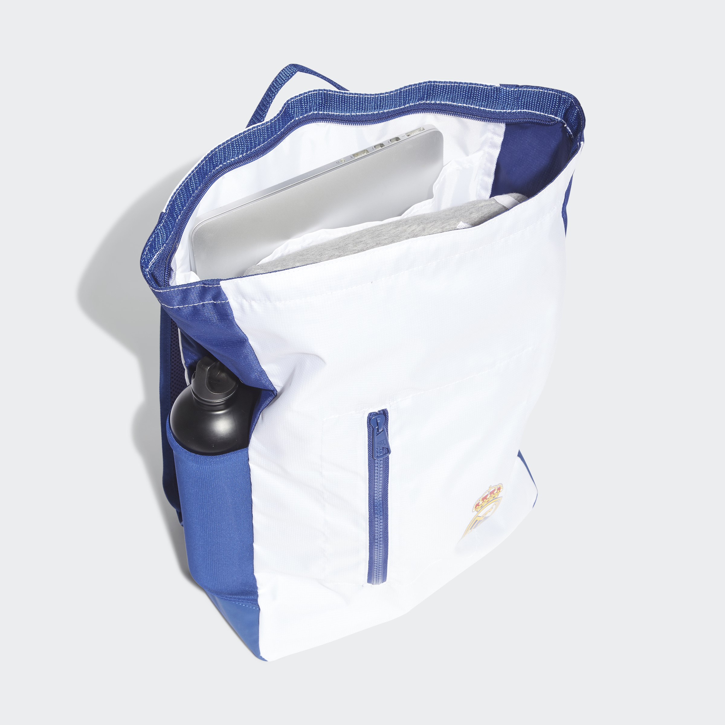 Carry your kit in the colours that matter. The tough woven shell of this adidas Real Madrid Backpack shares your football pride with a printed club badge. Side mesh pockets and a padded laptop compartment mean it's equipped for your everyday life. Air mesh shoulder straps ensure comfortable transport. This product is made with recycled content as part of our ambition to end plastic waste.