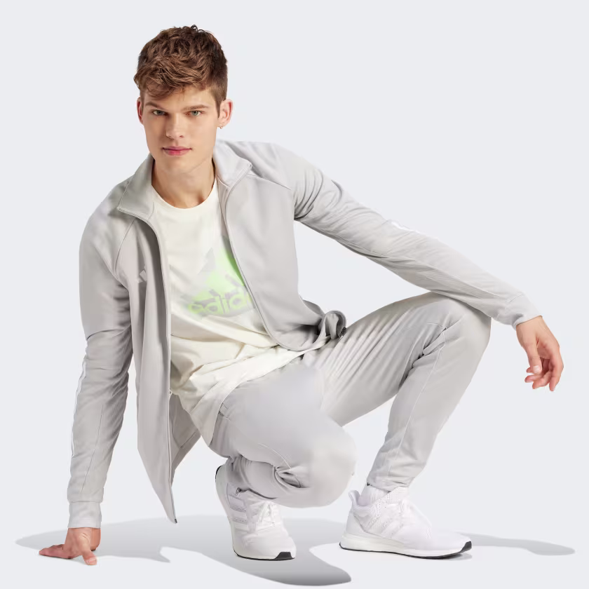 Slip into relaxation mode in this adidas tracksuit. Made with soft fabric and AEROREADY to keep you comfortable, it works well for unwinding on the weekend. The track top is cut for a slim fit so it sits nicely under a jacket on cooler days. Contrast 3-Stripes down the arms add sporty flair. This product is made with 100% recycled materials. By reusing materials that have already been created, we help to reduce waste and our reliance on finite resources and reduce the footprint of the products we make.