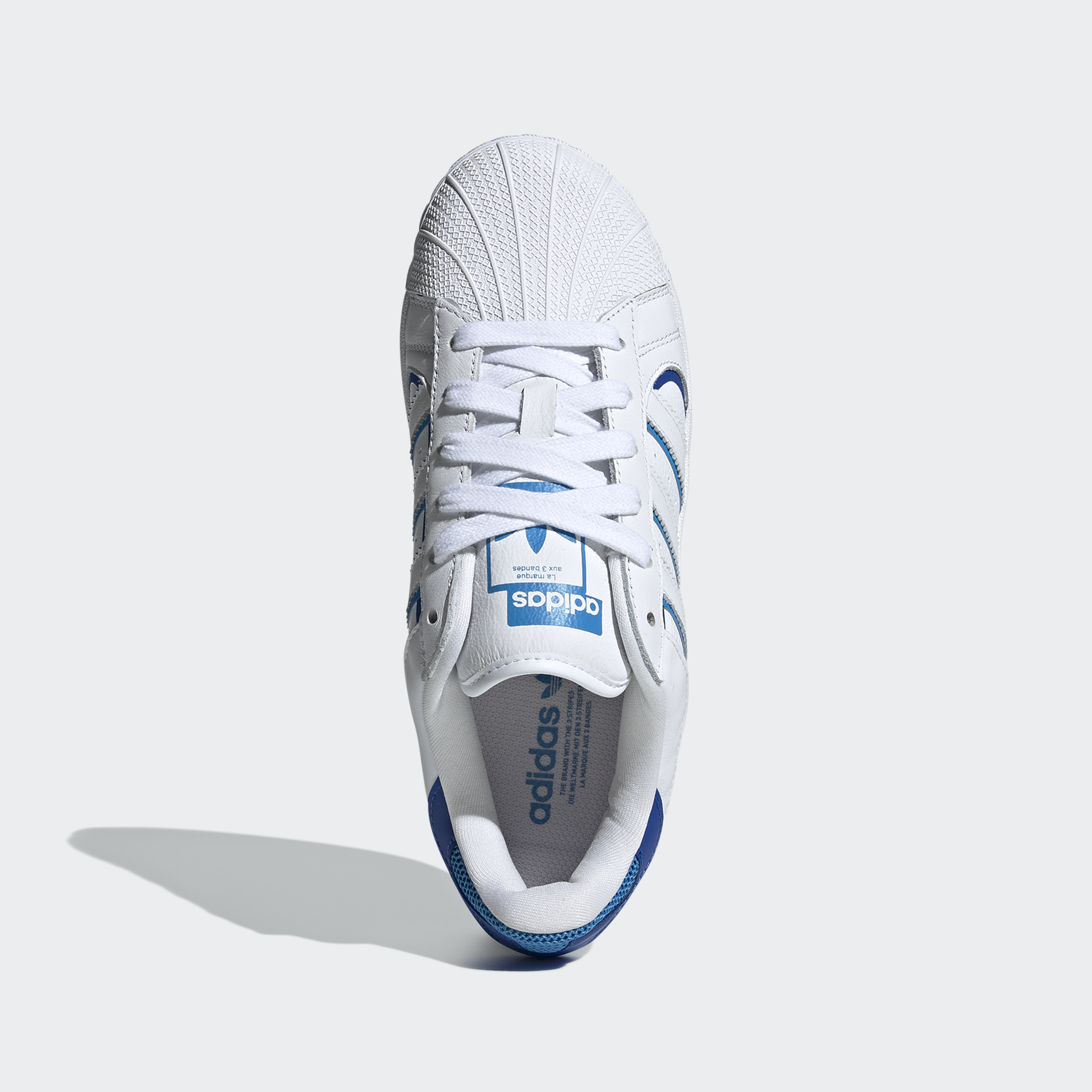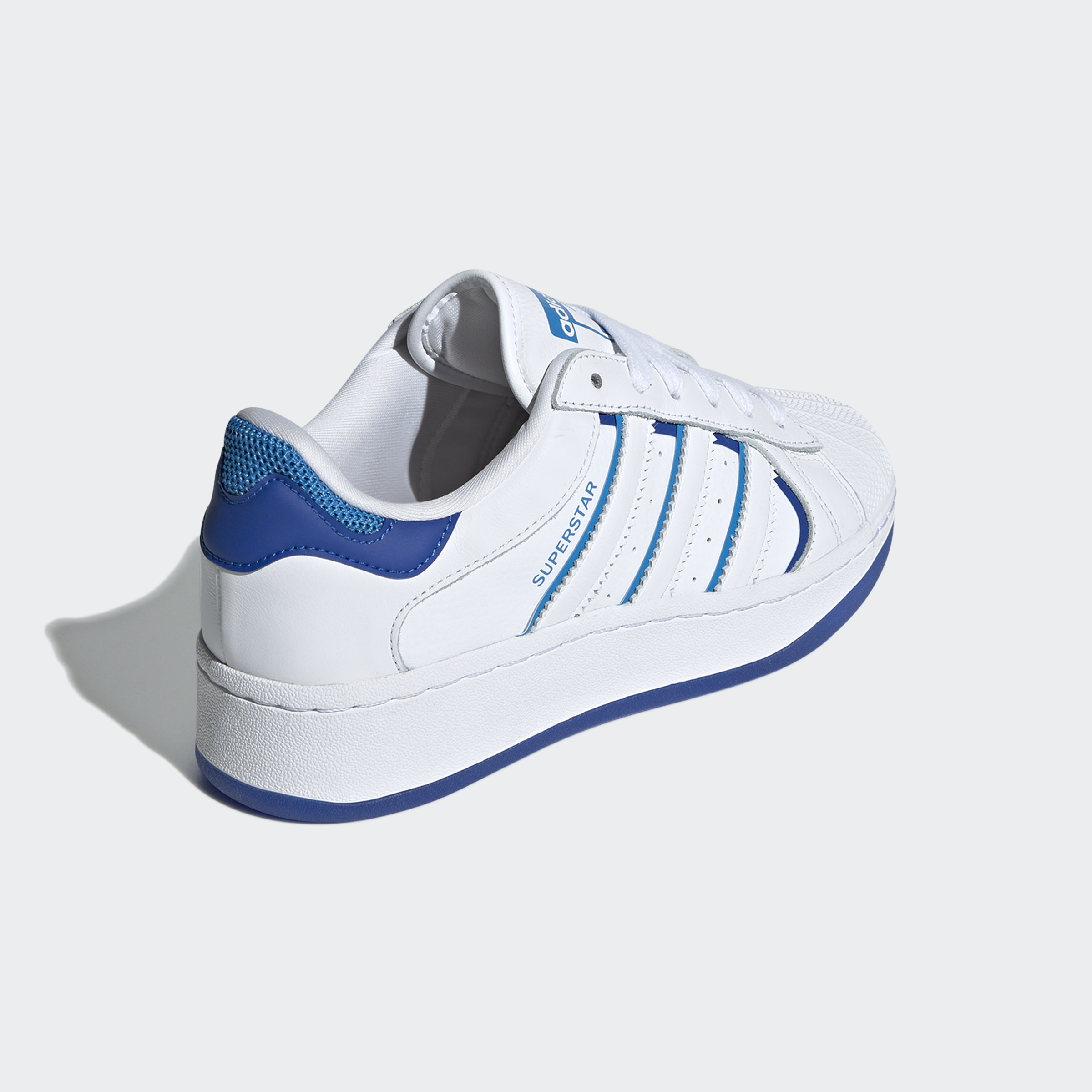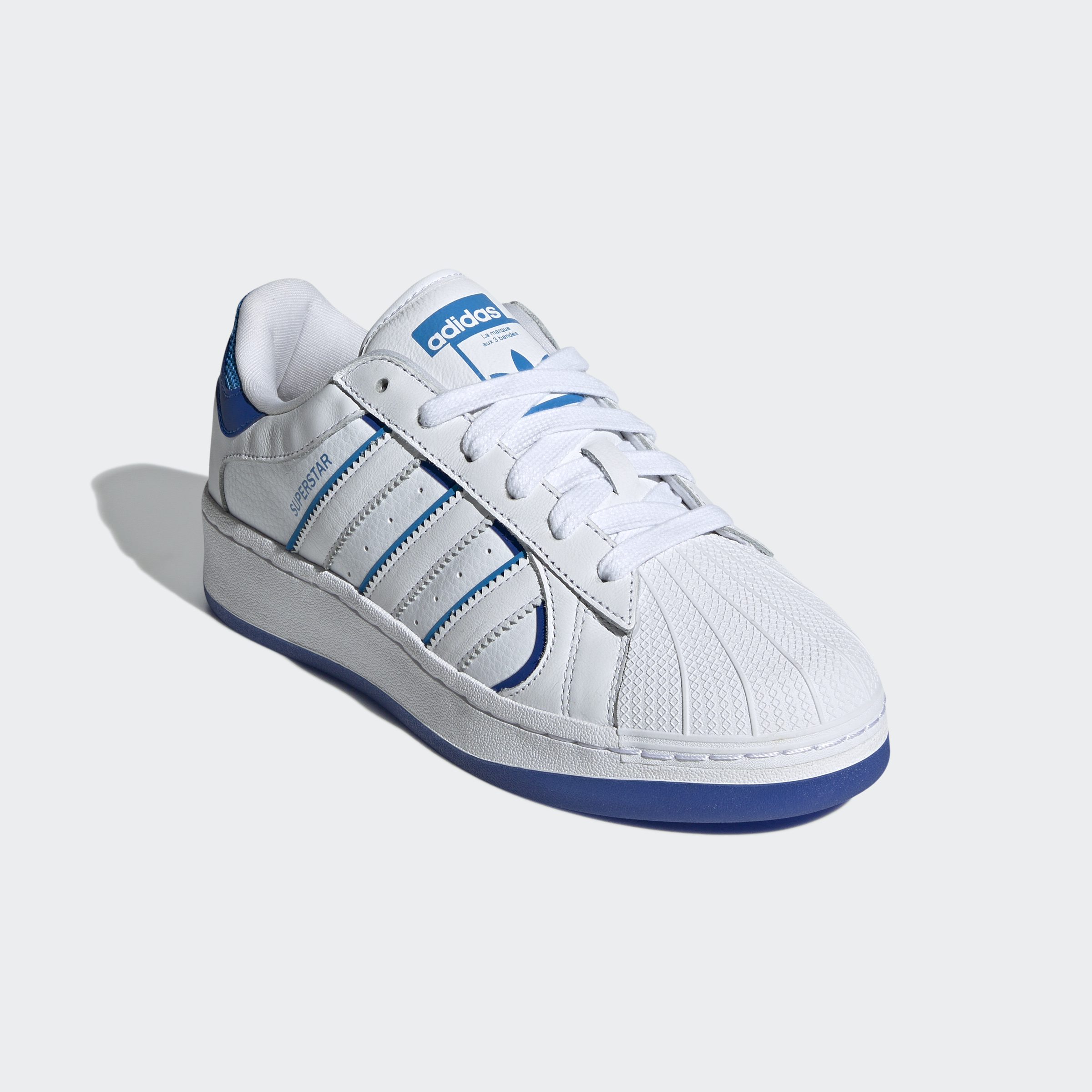 More than just a sneaker, the adidas Superstar XLG shoes are an icon reimagined. Step into history with a contemporary twist in the form of a smooth leather upper, a signature shell toe and updated outsole that transforms a legend. Whether you're exploring city streets or heading out for a night on the town, these shoes turn heads with their vibrant design and translucent outsole. An EVA midsole brings lightweight cushioning to keep you comfortable all day and into the night. For over 50 years, the Superstar has defined sport and street style – now you can make it their own.