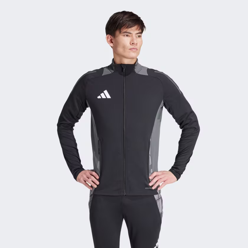 Fulfil your football potential. This jacket from adidas is built for the perpetual motion of the training pitch. Keeping you dry with moisture-wicking AEROREADY, it's an ideal extra layer for chilly evening sessions. Its zip pockets are perfect for storing energy bars for on-the-go refuelling. That comfortable piqué fabric build means you'll want to leave it on for the journey home.This product is made with 100% recycled materials. By reusing materials that have already been created, we help to reduce waste and our reliance on finite resources and reduce the footprint of the products we make.