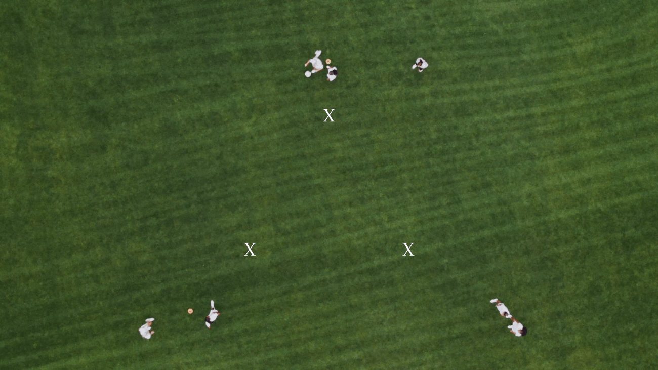 7. Next, repeat those steps, but this time, Player 2 will pass to the player at Cone 4 (top left of the Y).