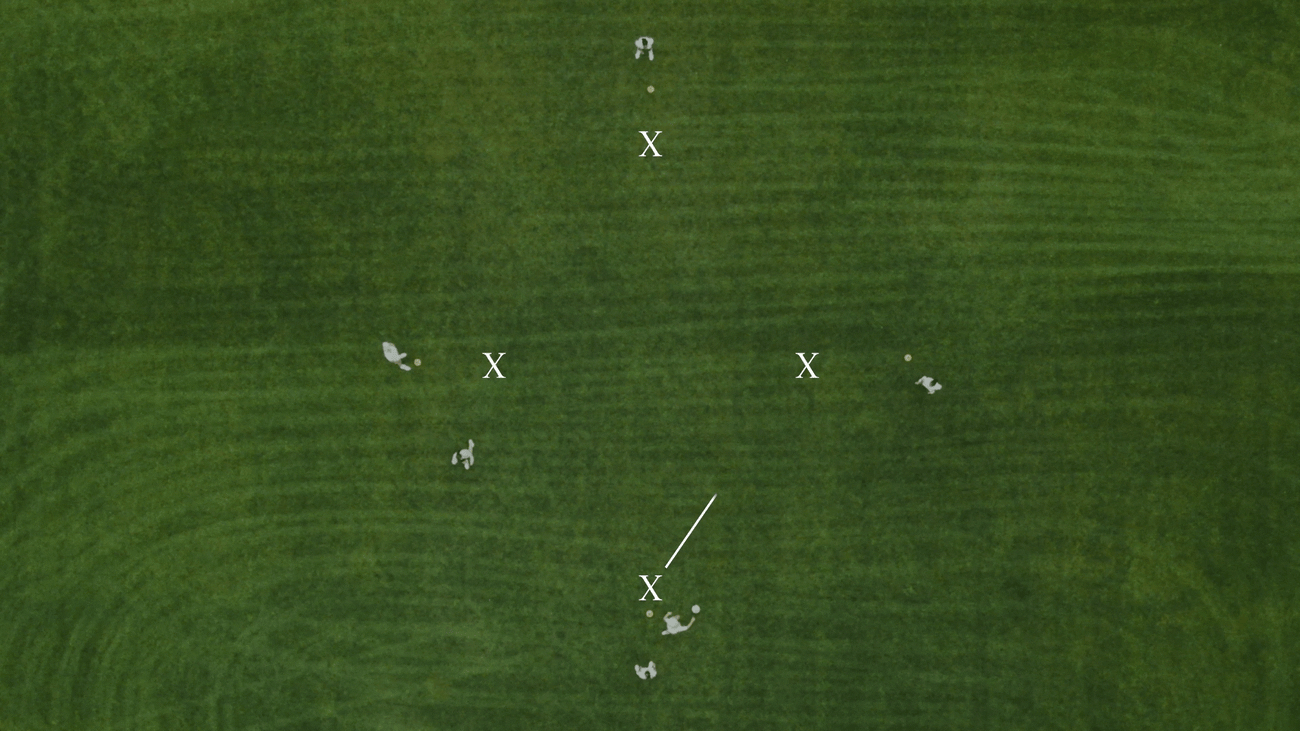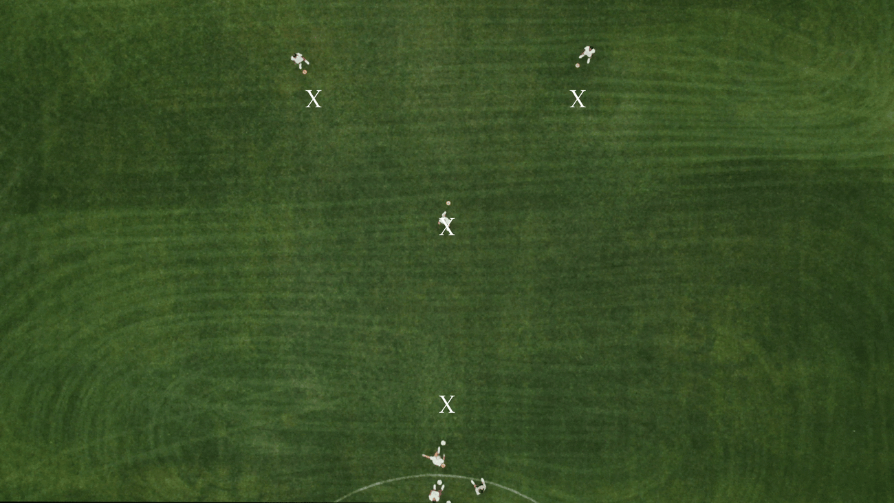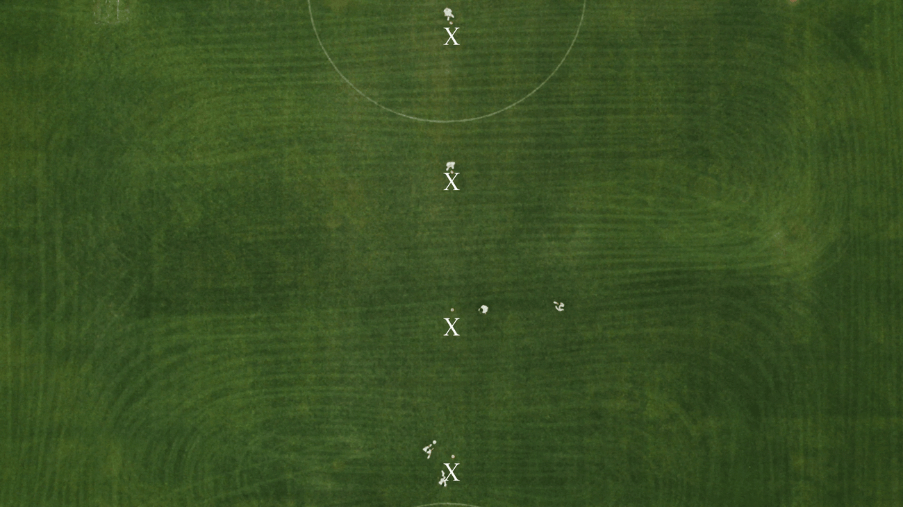 4. To start, Player 1 at the bottom of the Y passes to Player 2 at the middle of the Y.