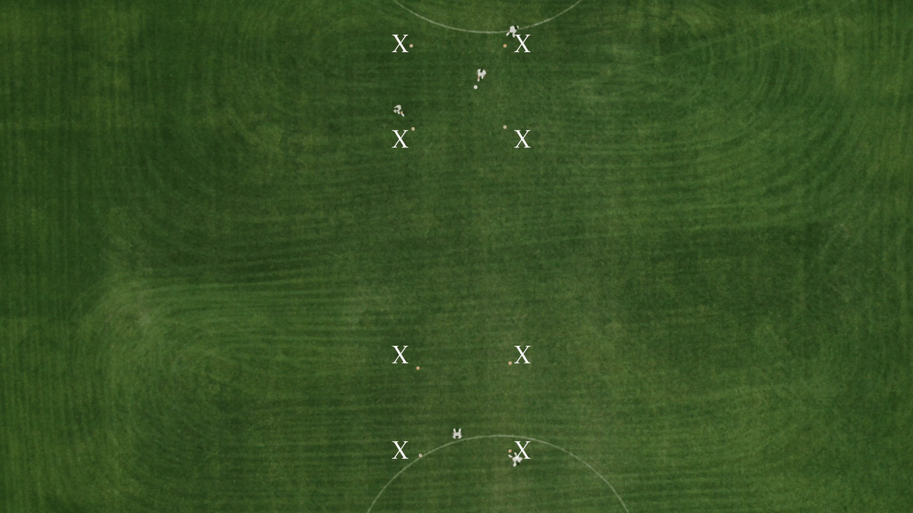 1. Use four cones to create a five-by-five square, and four cones to create another identical square15 yards away.