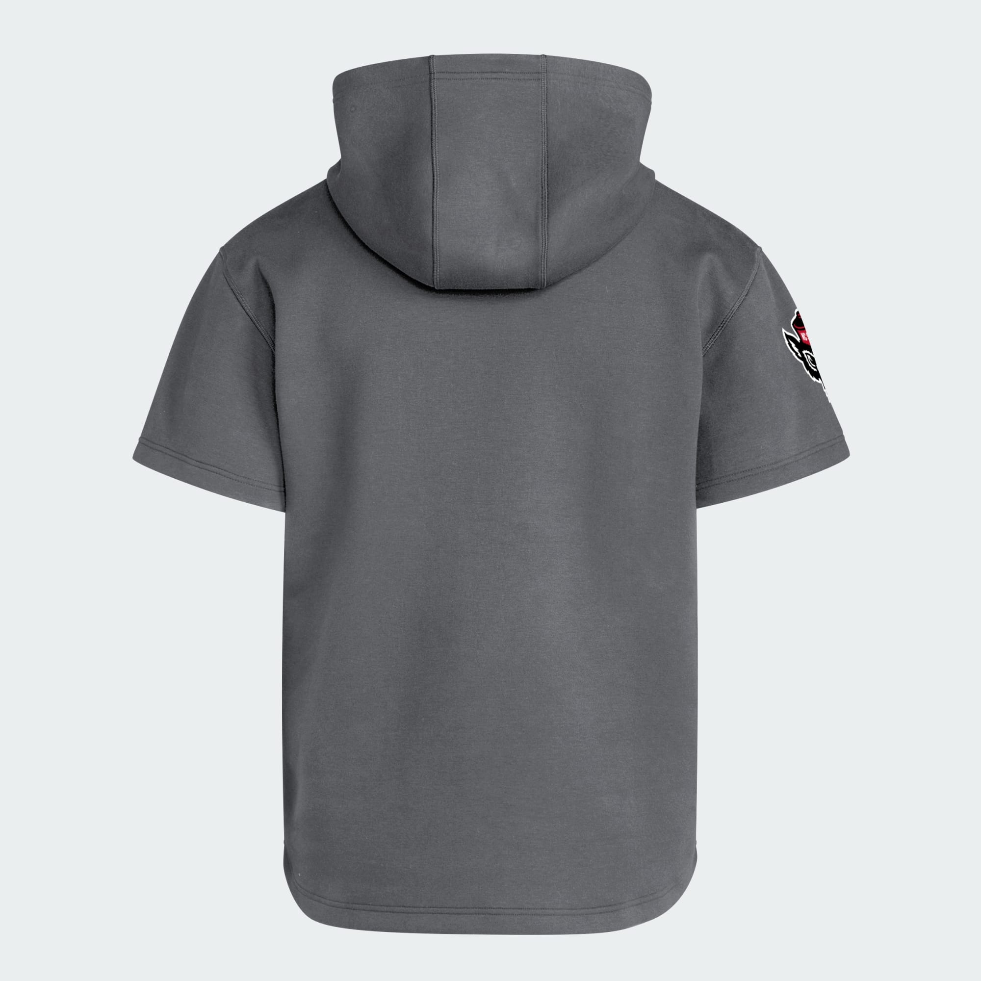 Short-sleeved hoodie with double knit fleece for cozy comfort.