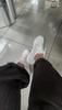 The pink really stands out even though it's a light tone. True to size even with thick socks