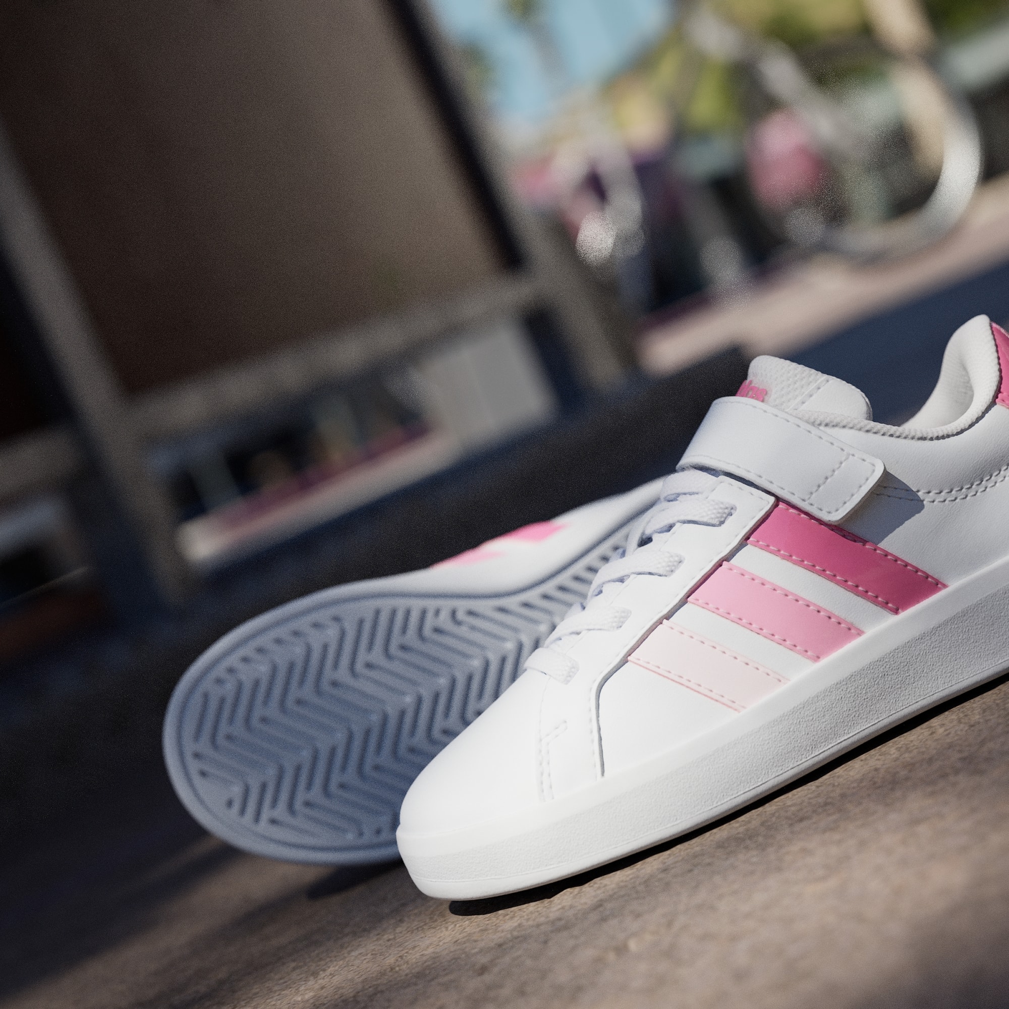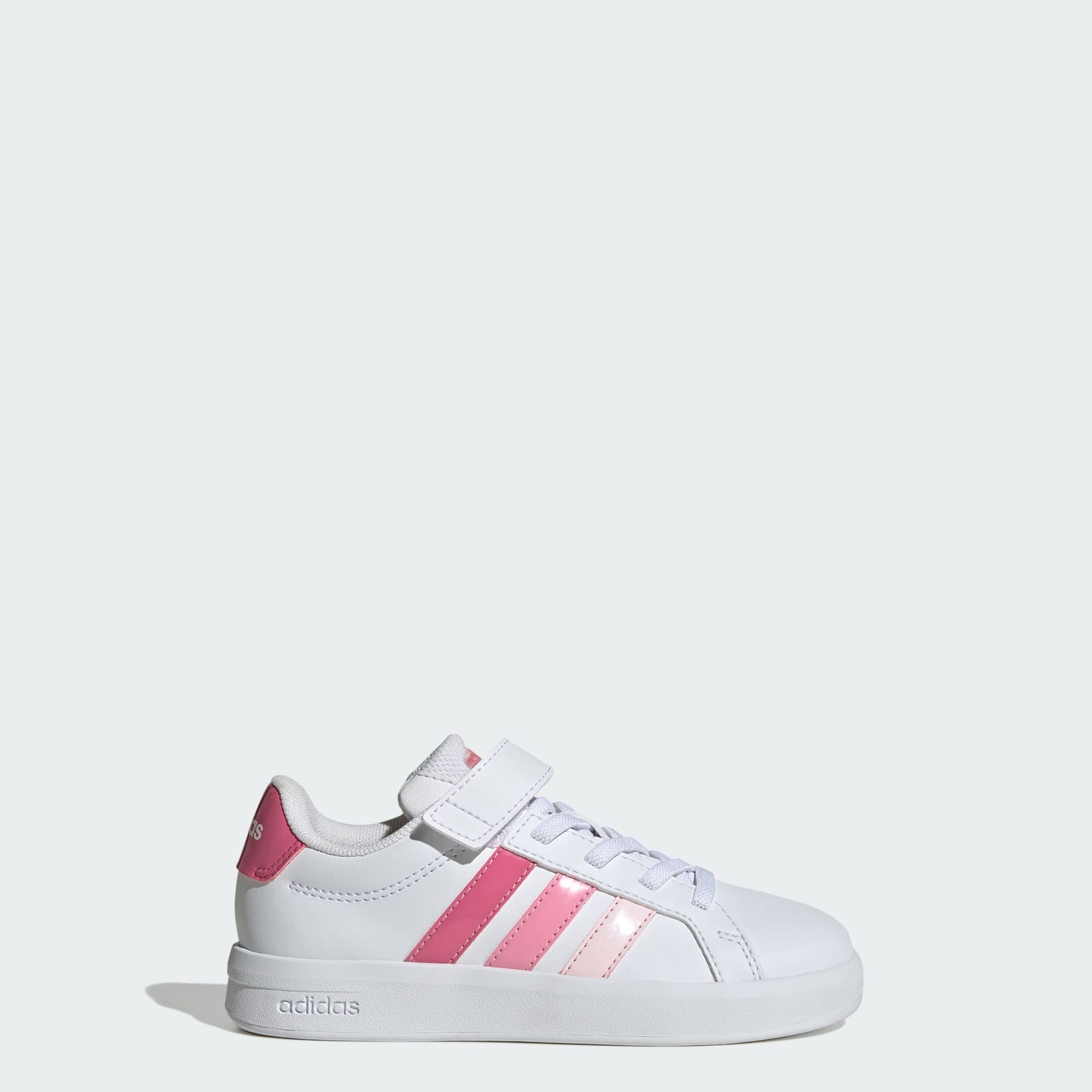 These shoes bring a modern refresh to the iconic adidas Grand Court, offering upgraded comfort in a design your kids will love. Playtime stays playful and school runs go faster thanks to elastic laces for easy on-and-off. A flexible forefoot puts a spring in young steps, with a top strap to secure a snug and stable fit. Parents will appreciate the non-marking rubber cupsole, which can also be relied upon for grip and durability. Sleek yet sturdy, this shoe prioritizes style and function. Signature branding signs off the classic look. Logos on the sole, heel and tongue will appeal to young fashionistas, while the colourful Três Listras remind us that this shoe is meant for fun.