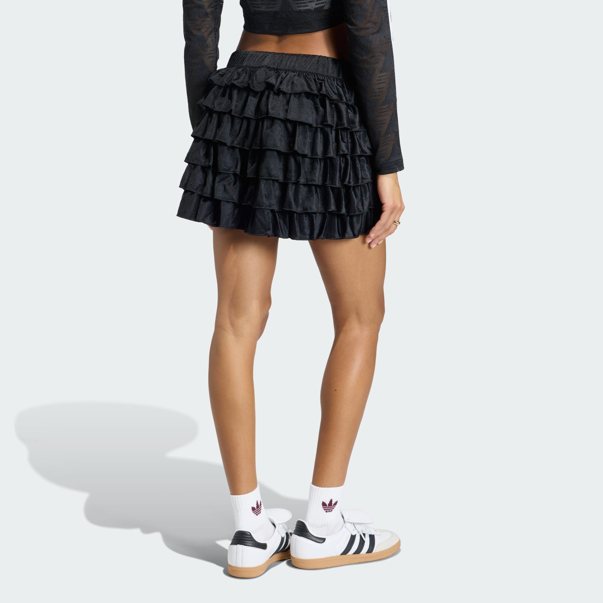 The Lace Ruffle Mini Skirt is where sporty meets chic, offering a fresh twist on classic silhouettes. Crafted with pique fabric, this skirt brings a playful touch to your wardrobe with its lace and ruffle elements. It's designed for those who love to stand out while staying comfortable. With a fully elasticized waistband, this skirt provides a snug fit that moves with you, making it a smart pick for any occasion. Its regular fit provides a flattering silhouette, allowing you to express your style effortlessly. From casual outings to evening plans, this skirt is your go-to piece for a fashion-forward look. Channel the adidas Originals spirit and make a statement with every step.