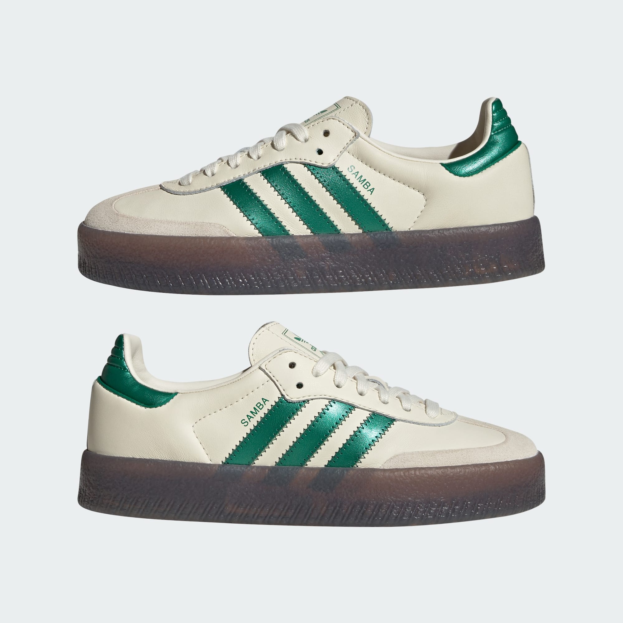 The Sambae Shoes are a bold evolution of an adidas classic, taking the DNA of the Samba and amplifying it with contemporary edge. Their slightly raised stance and reimagined proportions push the story forward while staying true to its heritage. Premium leather combines with suede overlays for a textured, versatile upper. The reshaped outsole adds definition, while the gum tooling delivers a nod to soccer legacy with a modern execution designed for movement. Brand signatures close out the look, including a striking serrated 3-Stripes, framing the shoe for a look that celebrates history while carrying the Samba into a new generation.