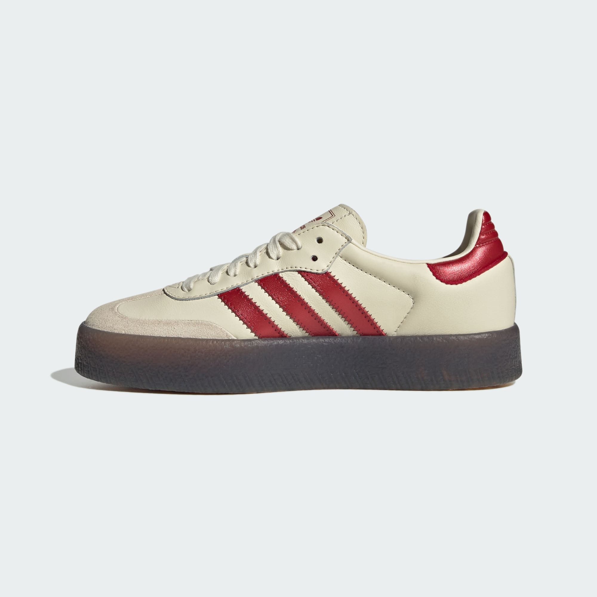 The Sambae Shoes are a bold evolution of an adidas classic, taking the DNA of the Samba and amplifying it with contemporary edge. Their slightly raised stance and reimagined proportions push the story forward while staying true to its heritage. Premium leather combines with suede overlays for a textured, versatile upper. The reshaped outsole adds definition, while the gum tooling delivers a nod to soccer legacy with a modern execution designed for movement. Brand signatures close out the look, including a striking serrated 3-Stripes, framing the shoe for a look that celebrates history while carrying the Samba into a new generation.